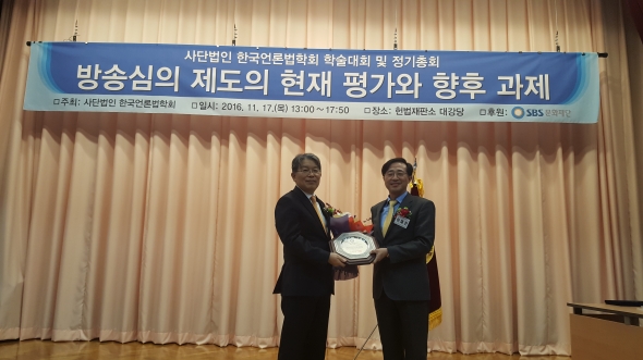 지난 11월 17일 2016년 추계 정기학술대회에 이어서 개최된 정기 총회에서는 제8대 집행부가 마무리 되었습니다. 제8대 회장 문재완 교수(한국외대 법학전문대학원)는 황성기 교수(한양대 법학전문대학원) 등에게 공로상을 수여하는 일정을 마지막으로 임기를 마무리 하였습니다.