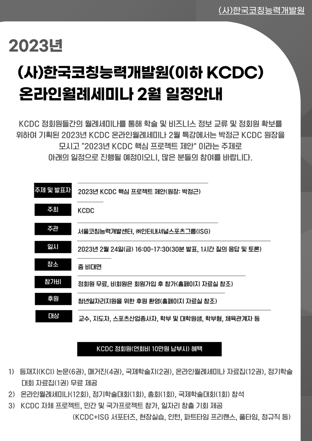 2023년 KCDC 온라인월례세미나 2월 안내