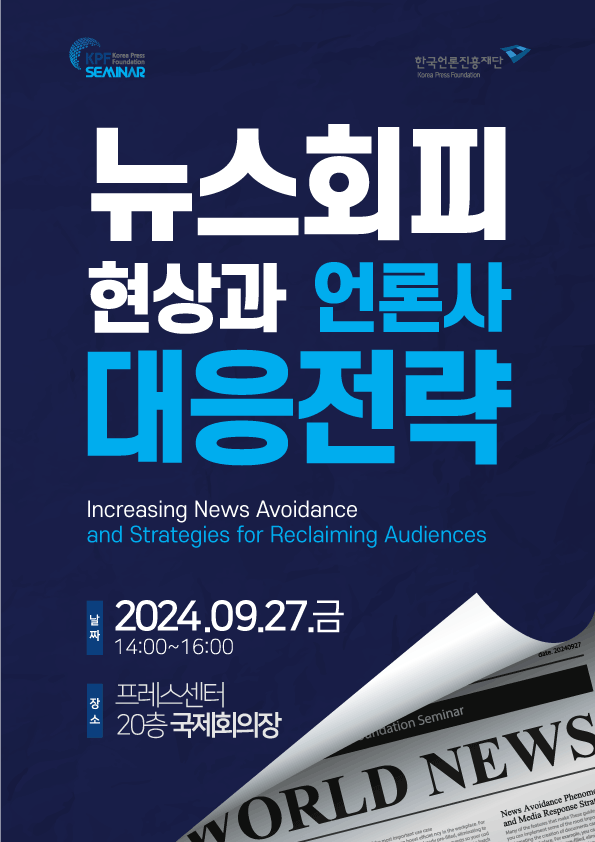 2. 한국언론진흥재단에서 <뉴스회피 현상과 언론사 대응전략>을 주제로 다음과 같이 세미나를 개최​합니다. 회원님들의 많은 관심과 참여 바랍니다.