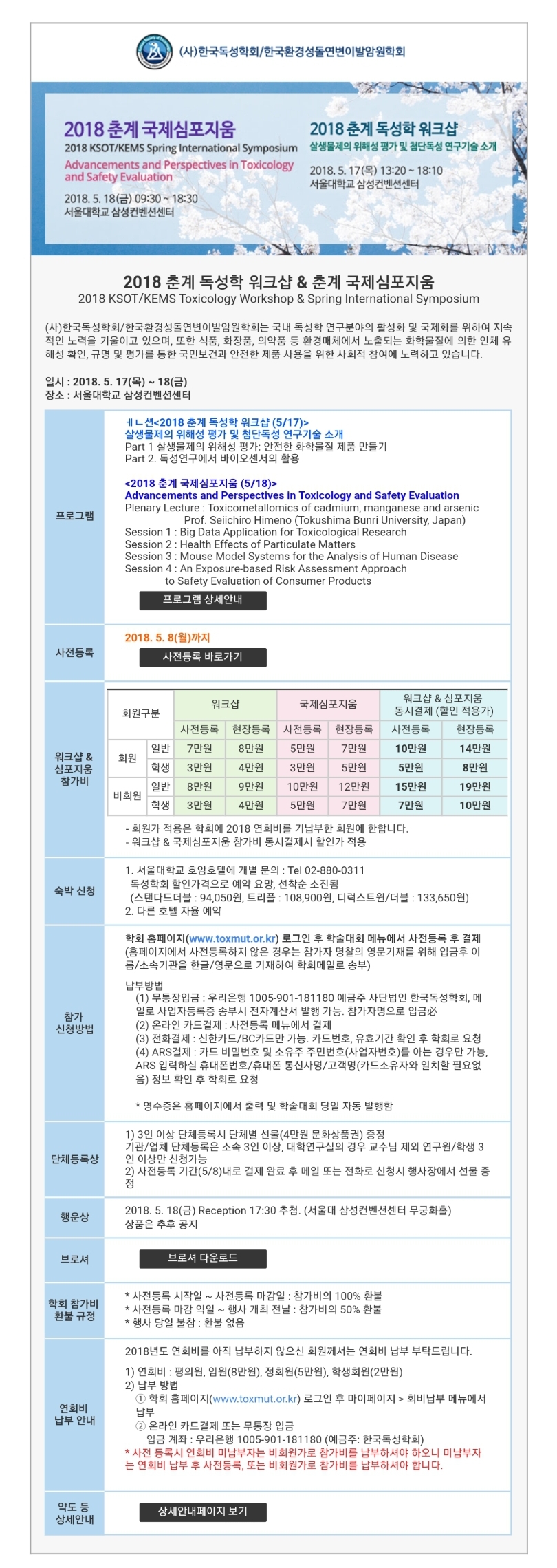 2018 한국독성학회 춘계 독성학 워크샵 & 국제심포지움 안내