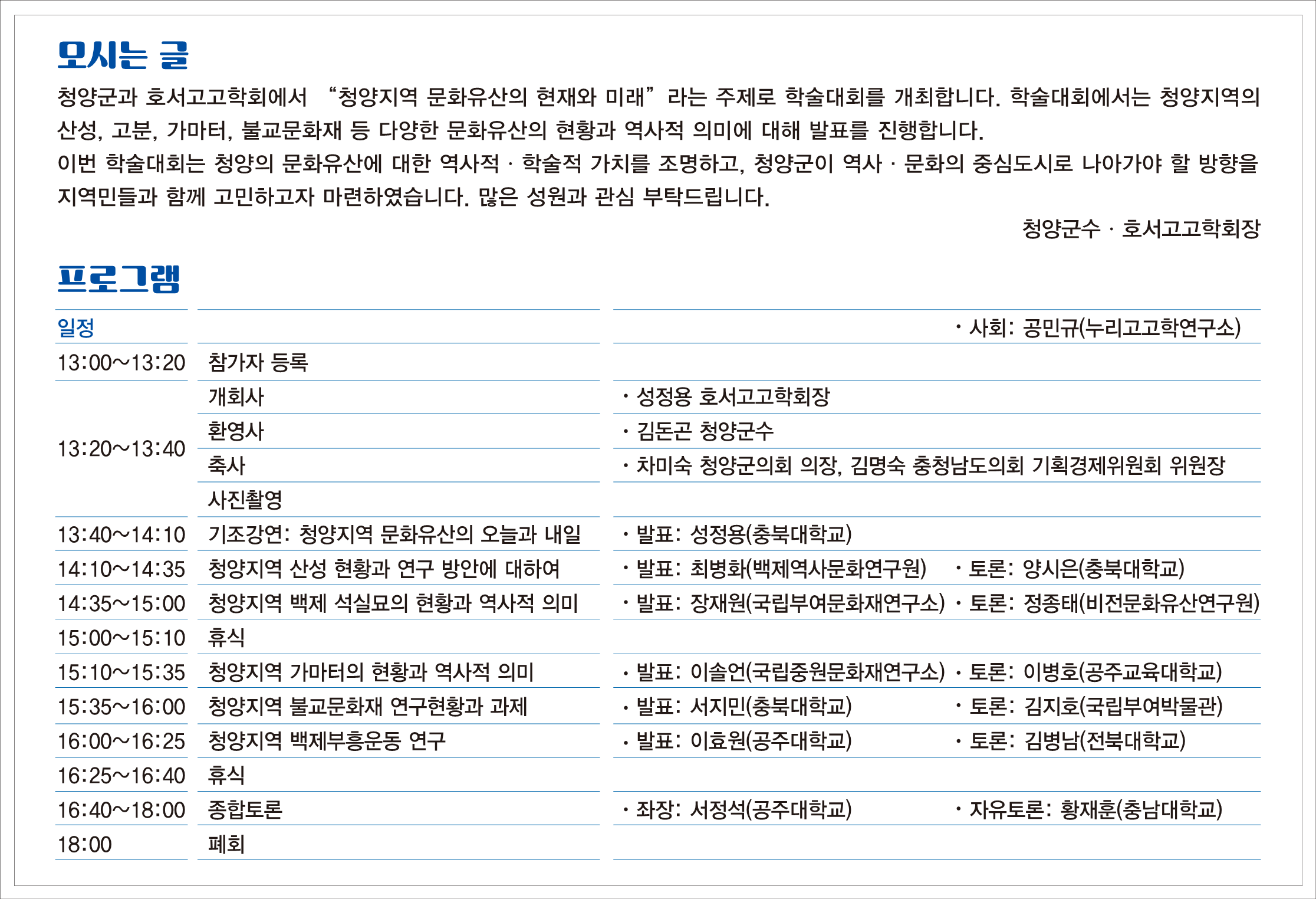 - 주제 : 청양지역 문화유산의 현재와 미래