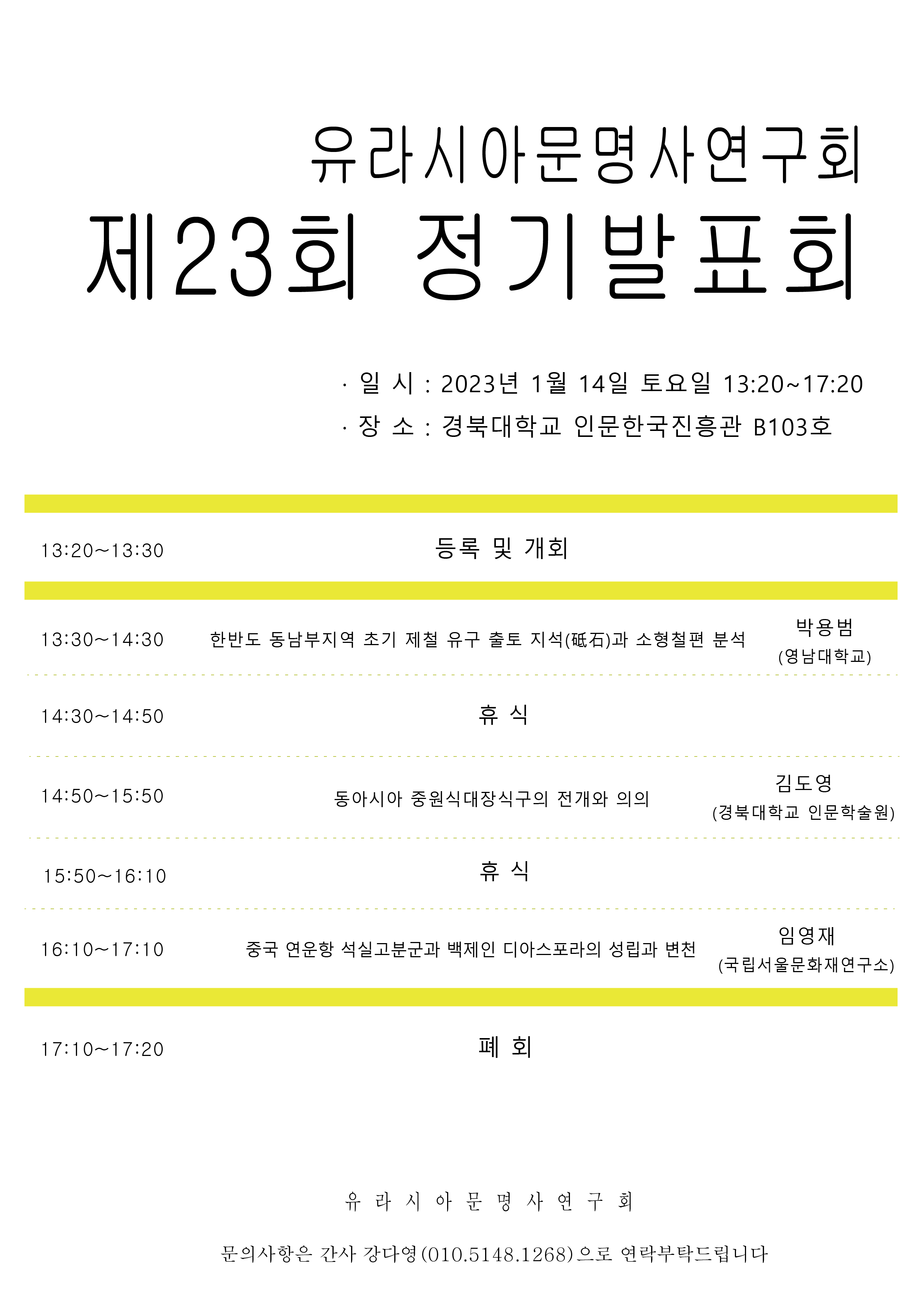 2023년 1월 14일 토요일, 유라시아문명사연구회 제23회 정기발표회가 진행될 예정입니다.