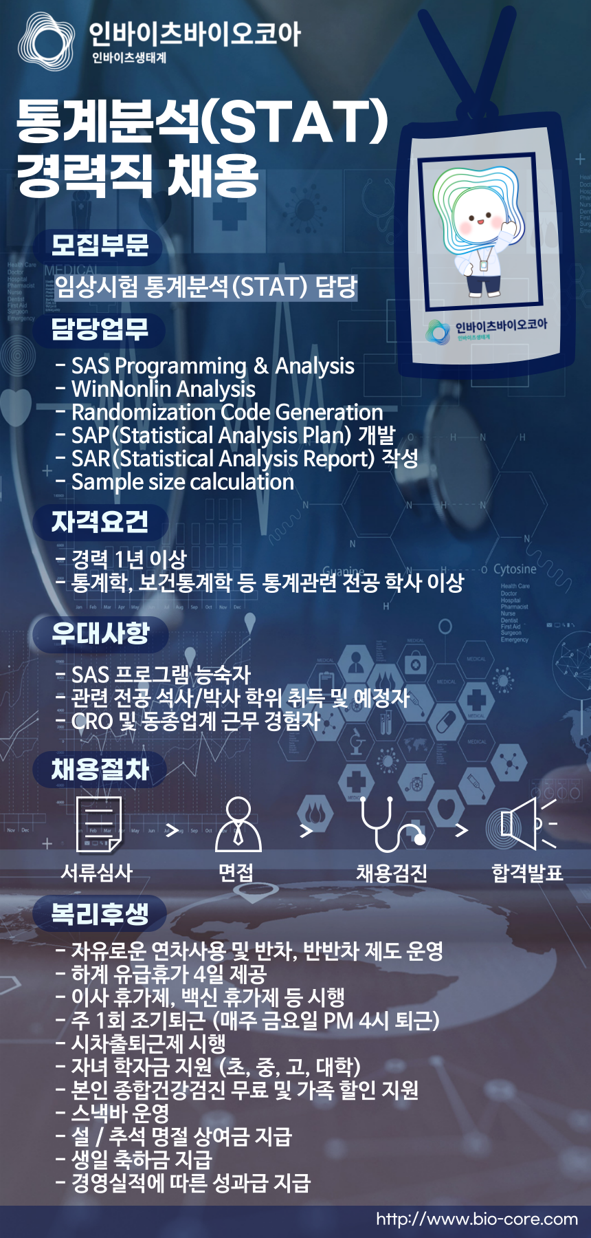 [채용]인바이츠바이오코아(주) STAT 경력직 채용공고