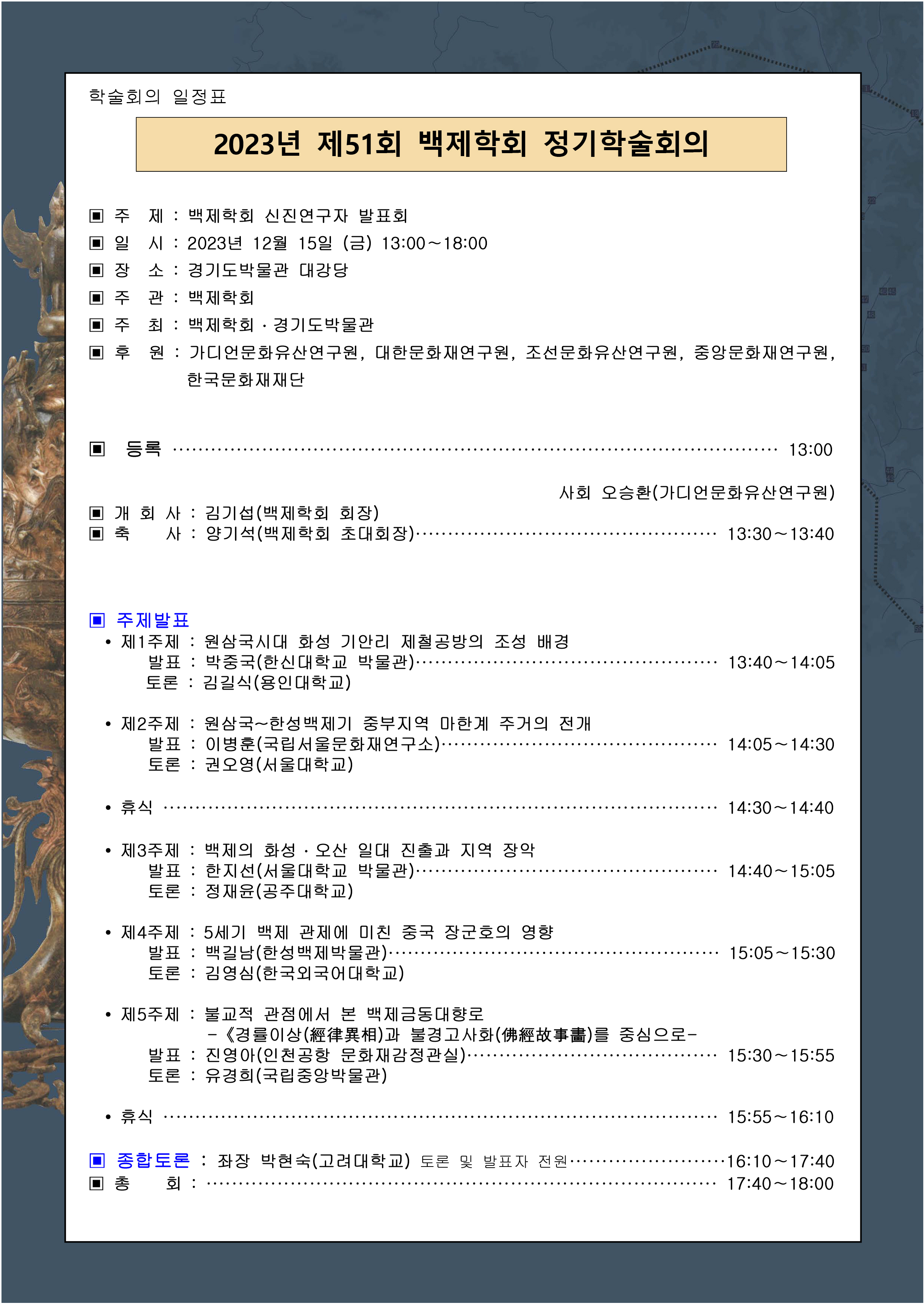 제51회 백제학회 정기(동계)학술회의 – 신진연구자 발표회- 안내