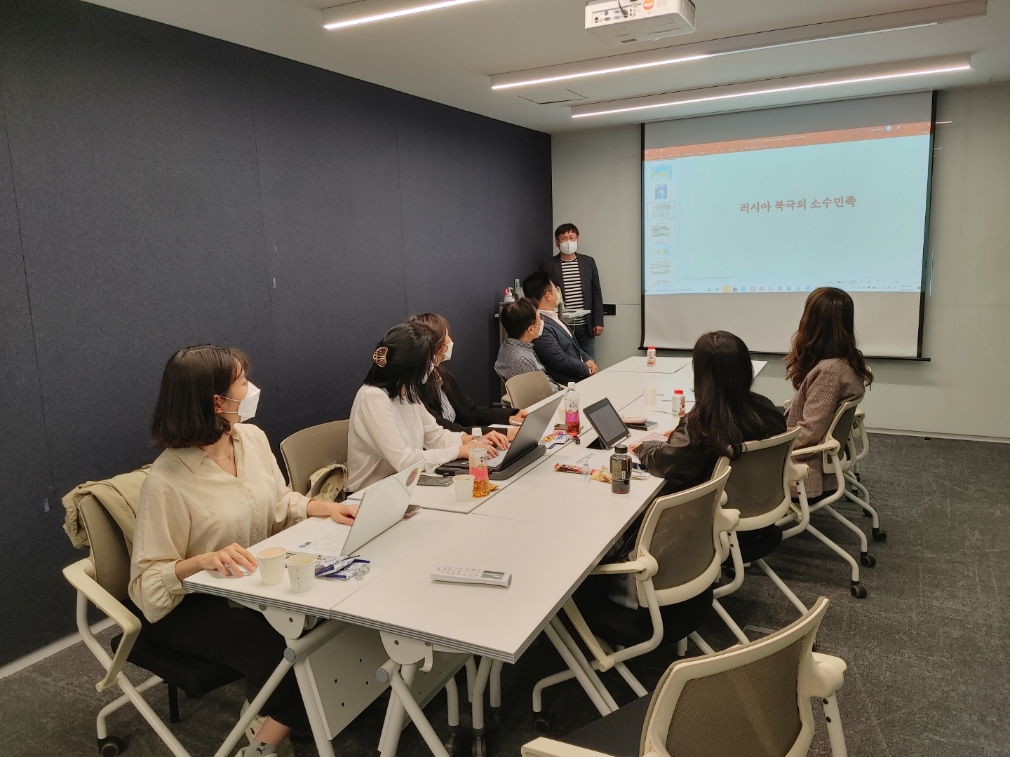 4월 25일 인천시 송도 IBS 타워 회의실에서 최우익 극지연구센터 소장의 개회사로 시작된 본 워크숍은 북극 전문가의 강연과 참여 학생의 연구주제 발표로 나뉘어 진행됐다. 화상 강연을 통해, 극지연구소 신형철 국제협력실장이 ‘북극의 기후 변화가 환경과 사회에 미치는 영향’에 관해 발표했다. 뒤이어 극지연구소 한승우 미래전략실장이 ‘러시아 북극의 환경보호 법제도’에 관해 설명했고, 극지연구소 미래전략실 서현교 박사가 ‘러시아 정부의 대내외 북극 정책 평가와 전망’을 주제로 강연했다. 한국외대 김봉철 국제학부 교수는 ‘러시아 소수민족 정책’을 개괄했고, 한국외대 라승도 러시아연구소 교수는 러시아 북극에서 주목할 만한 영화를 소개하며 ‘러시아 소수민족 문화’에 관해 논의했다. 마지막 순서로 참가 학생의 워크숍 주제 발표 시간이 이어졌다. 한국외대 국제지역대학원 러시아CIS학과 소속의 강하람, 김현진, 김혜영, 도민지, 자나르 카이롤라 학생은 각각 러시아 북극 원주민의 식량안보, 러시아 극동 지역 목재 산업, 러시아 북극 인프라, 러시아 북극 원주민의 동향, 러시아 북극의 사회 등을 주제로 연구 목적을 제시했고, 발표 이후 연구 주제 및 방법에 관한 피드백이 이어졌다.