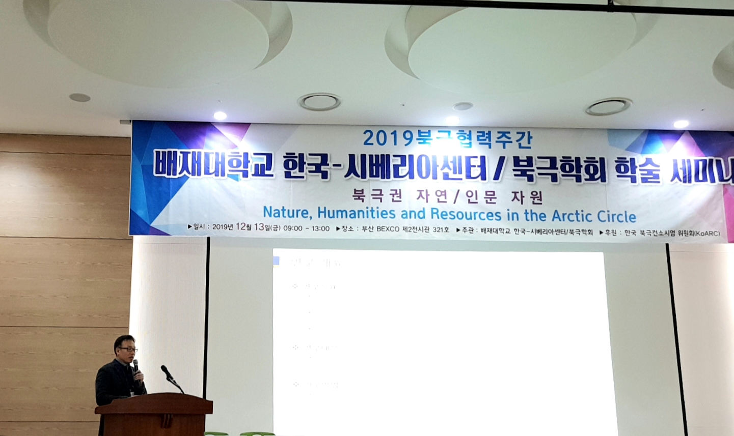 2019년 12월 13일 최우익 HK교수는 배재대학교 한국-시베리아센터와 북극학회가 주관한 ‘북극권 자연/인문 자원’ 학술세미나에서 ‘러시아 북극 지역의 인구 이동과 인적 자원 현황’이라는 주제를 발표했다. 이 학술세미나는 해양수산부와 외교부가 주최하고 한국해양수산개발원과 극지연구소가 주관한 ‘2019 북극협력주간’의 한 행사로 조직되었다. 또한, 한국외국어대학교 러시아연구소는 ‘2019 북극협력주간’의 협력기관이다.