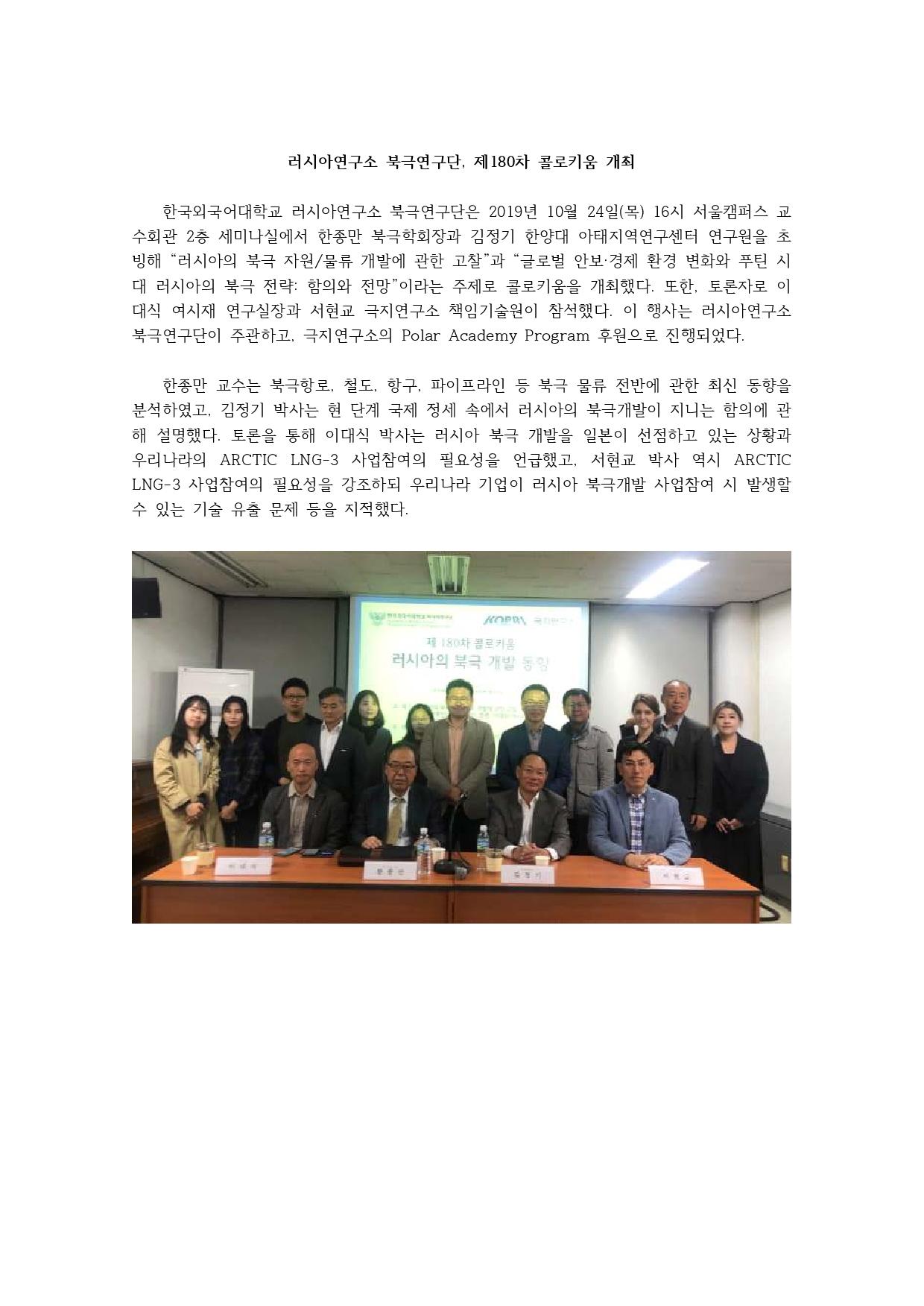 최우익 HK교수, 2019 북극협력주간 학술세미나에서 발표