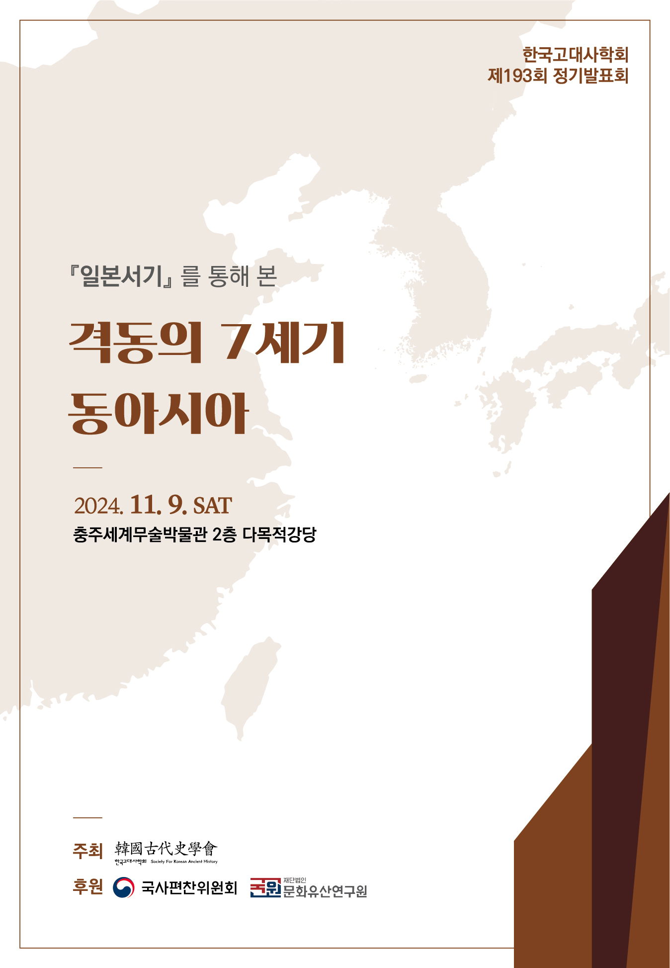 [공지] 한국고대사학회 제192회 정기발표회 "『일본서기』를 통해 본 격동의 7세기 동아시아"